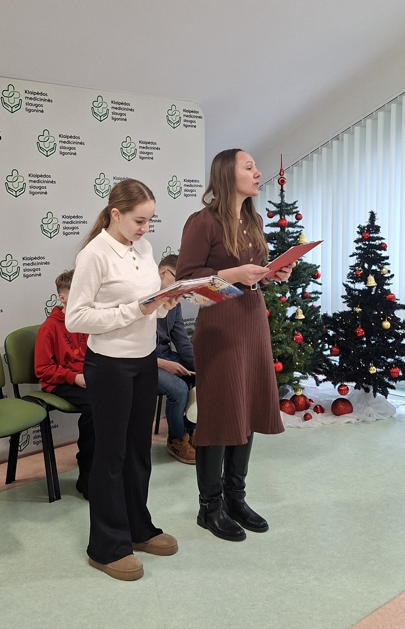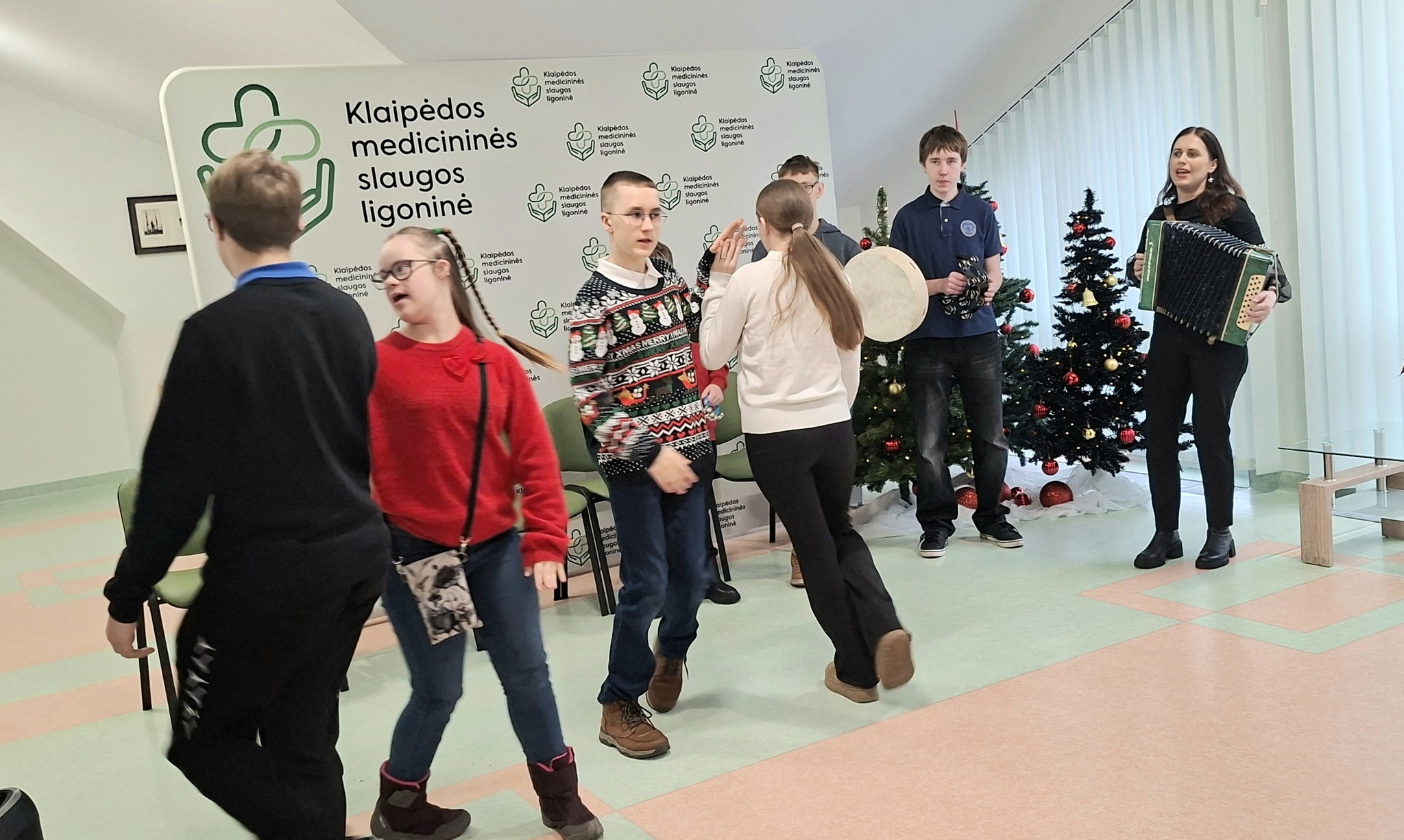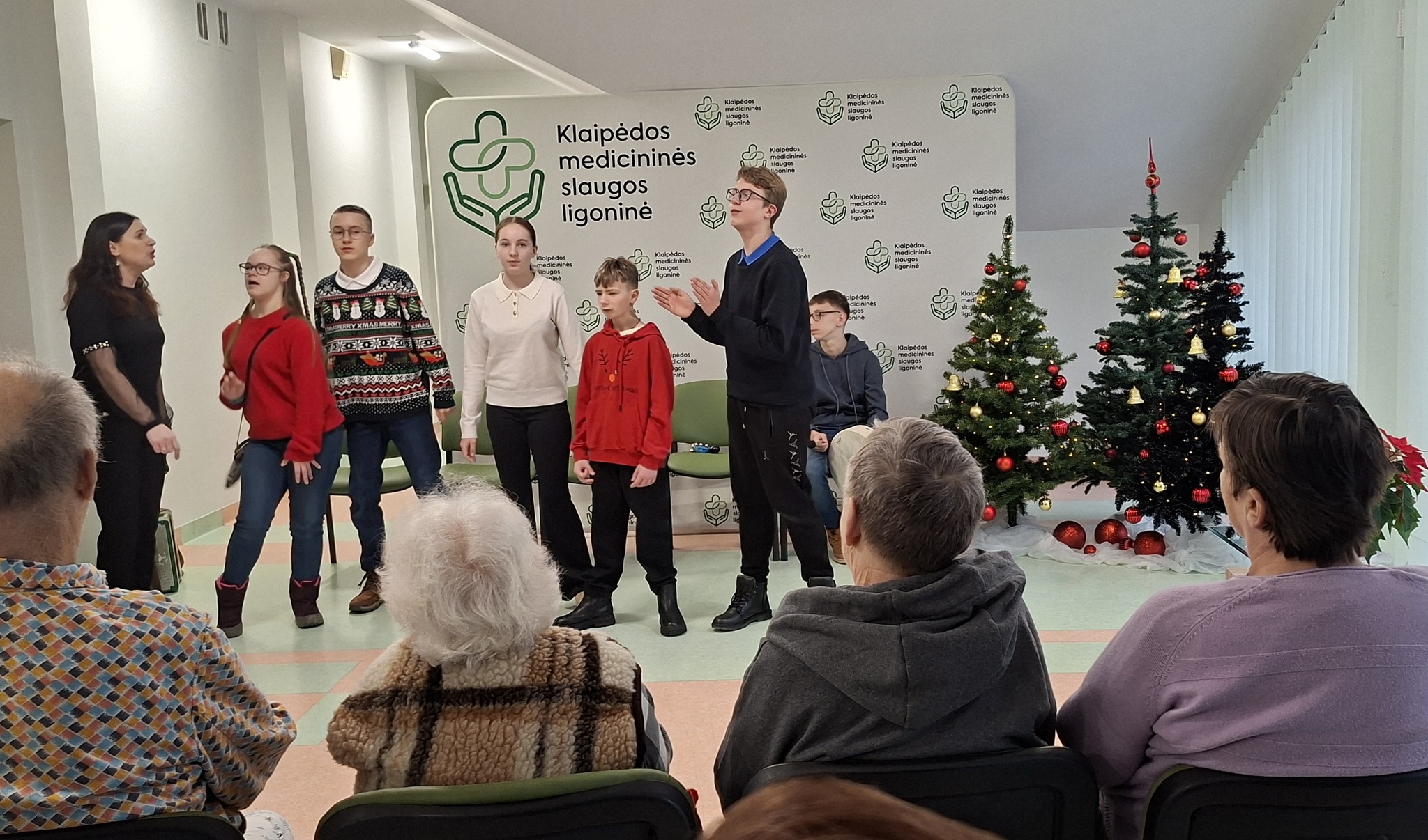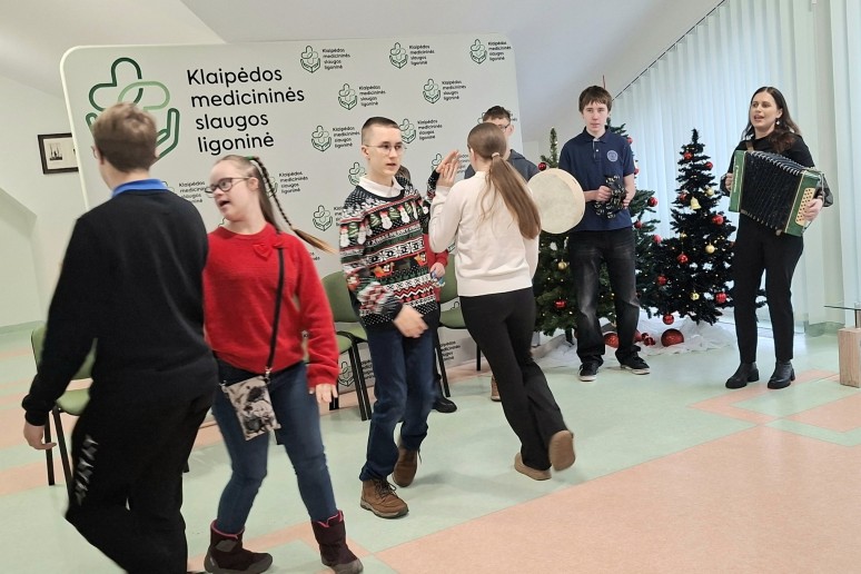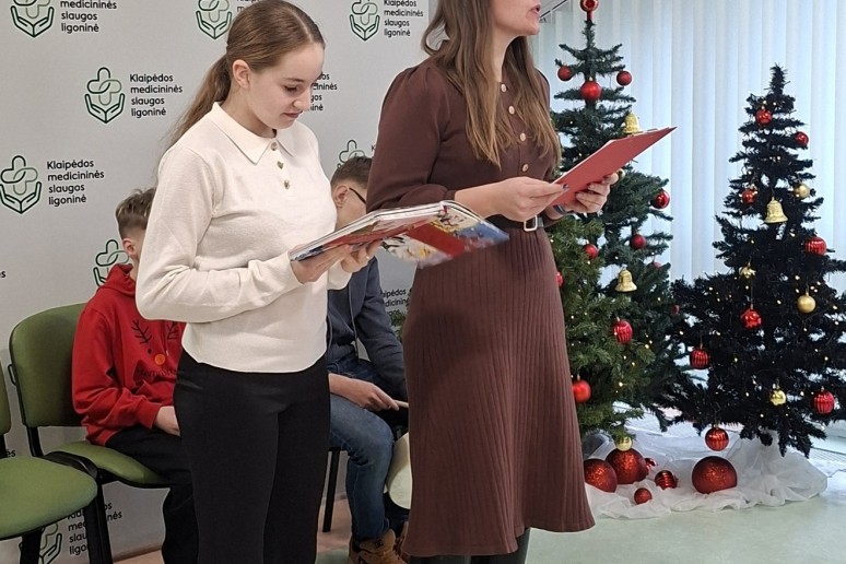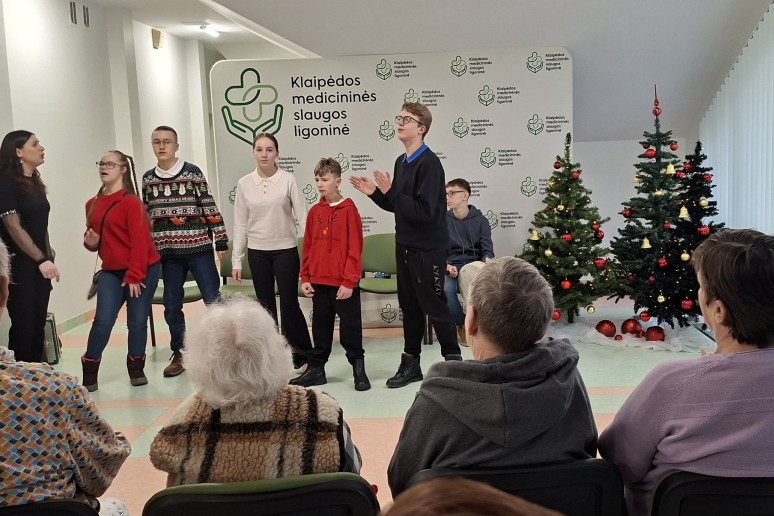 Šiandien Klaipėdos Litorinos mokyklos 6, 7 ir 9 klasių mokiniai pacientams paruošė šventiškai jaukią ir širdį šildančią programą. Skambėjo dainos, šokiai, eilėraščiai ir žiemiška pasaka. Taip pat mokiniai padovanojo gerumo ir šilumos simbolius – rankų darbo angeliukus bei saldžias dovanėles.