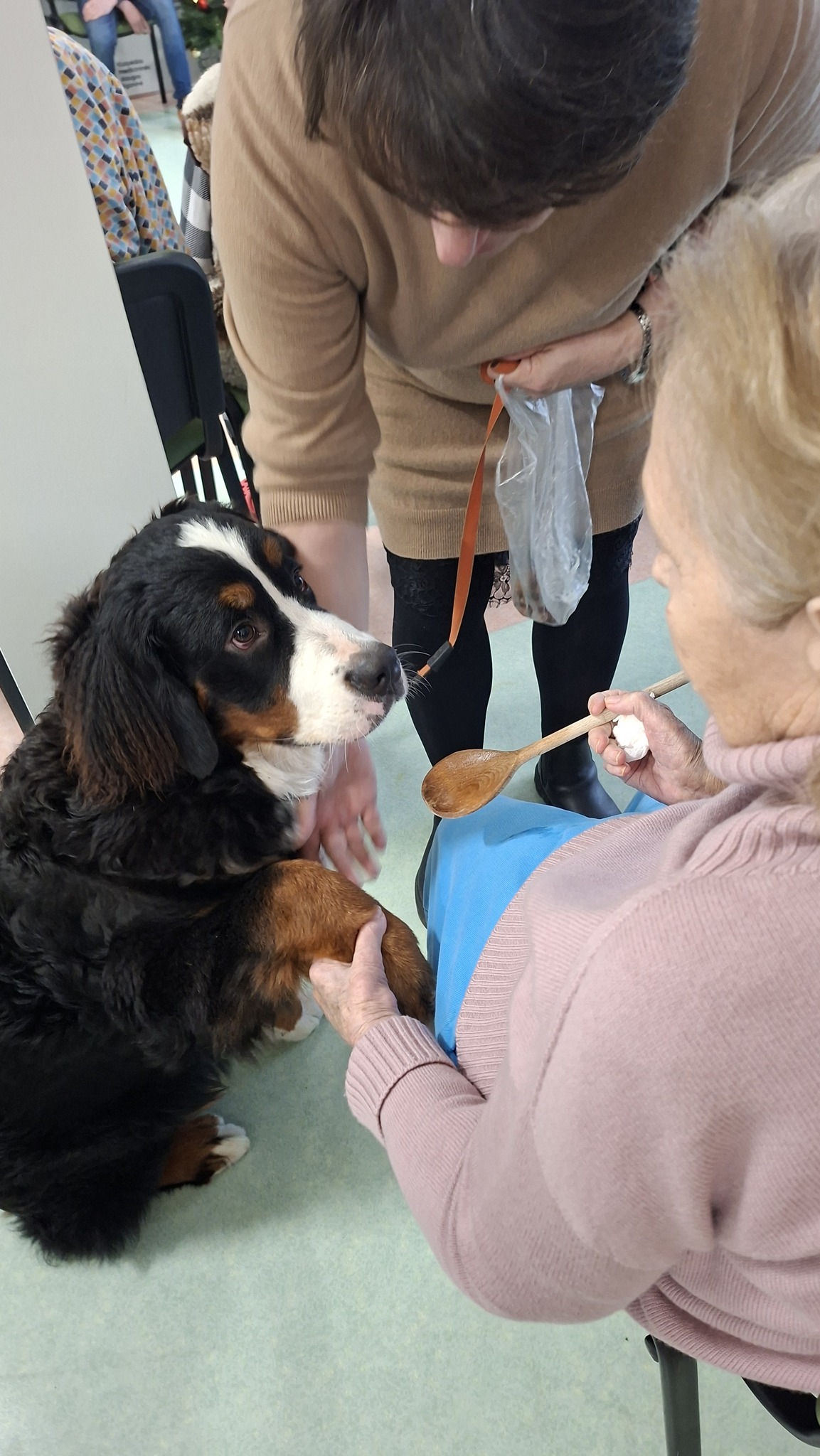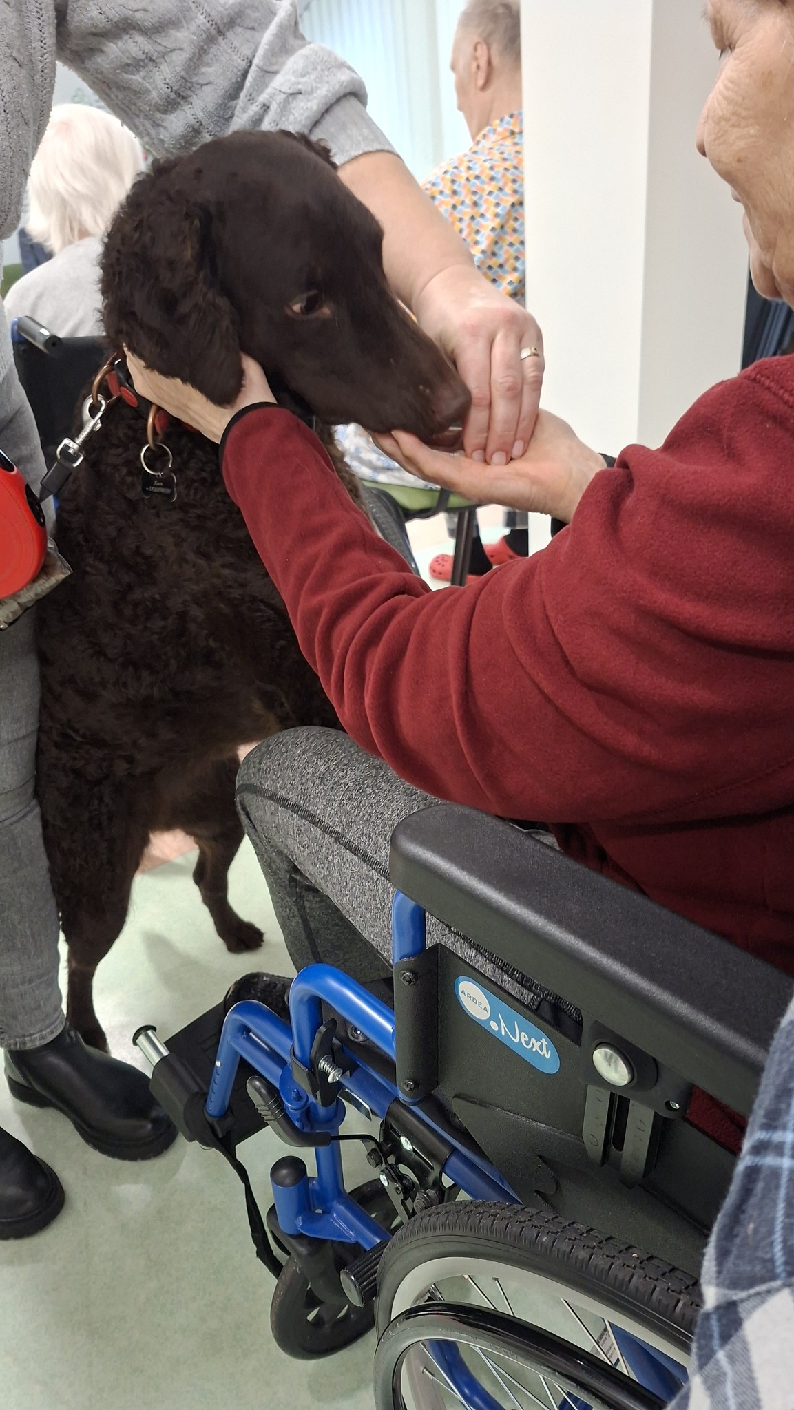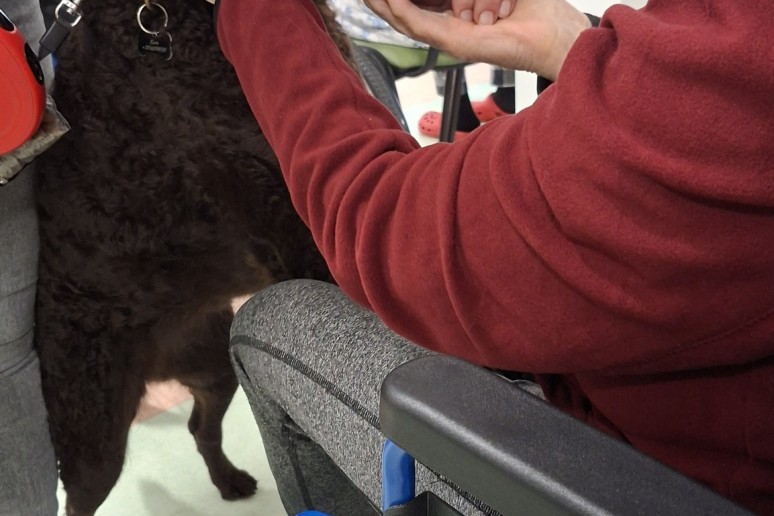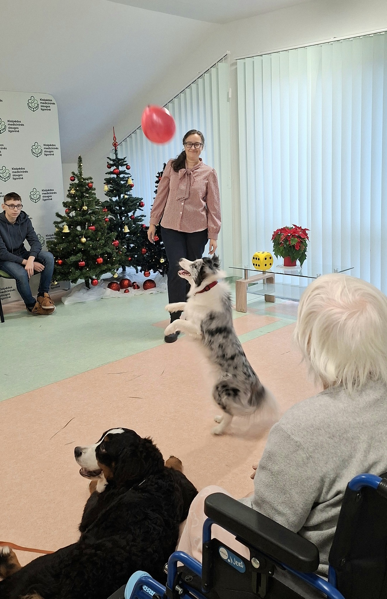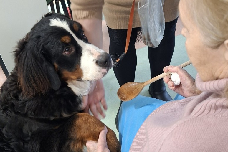 Po mokinių pasirodymo vyko kaniterapijos užsiėmimas. Keturkojai draugai Kana, Taira ir Kava vizgino uodegas tarp pacientų, šelmiškai mėgavosi kiekvienu paglostymu, demonstravo savo talentus ir dalijosi besąlygiška meile.