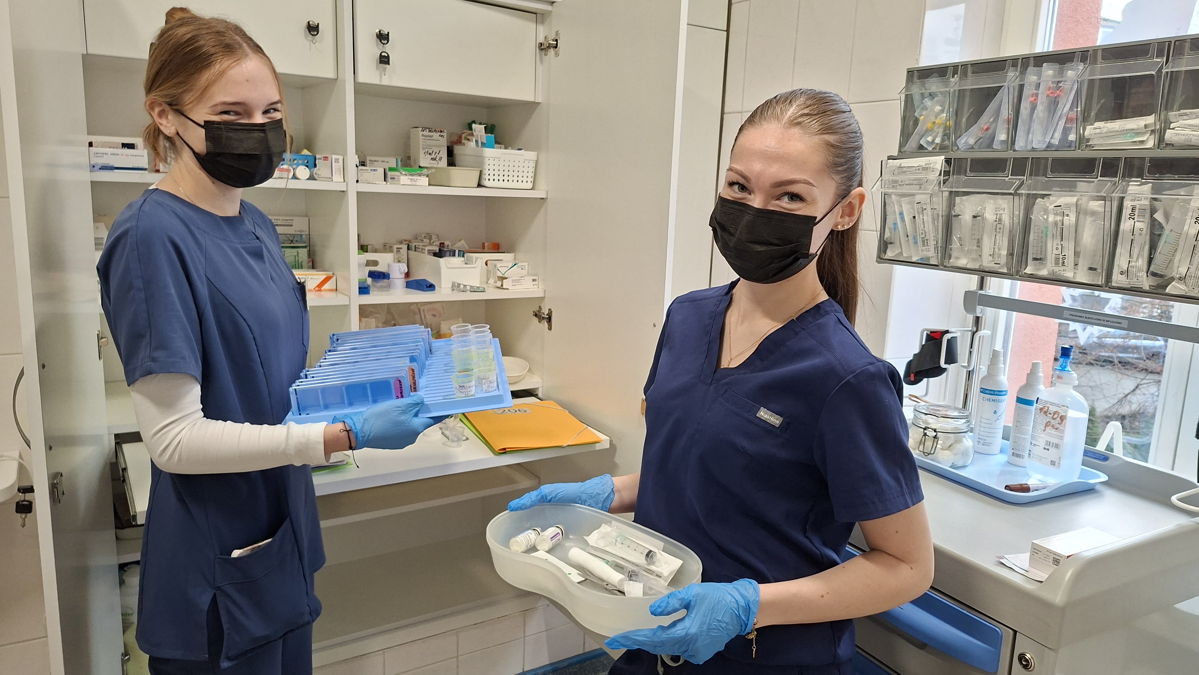 Klaipėdos universiteto Sveikatos mokslų fakulteto trečio kurso slaugos studijų programos studentai praktiką ligoninėje vertina ypač palankiai – čia jie ne tik pritaiko teorines žinias, bet ir įgyja daugybę naujų, vertingų praktinių įgūdžių.