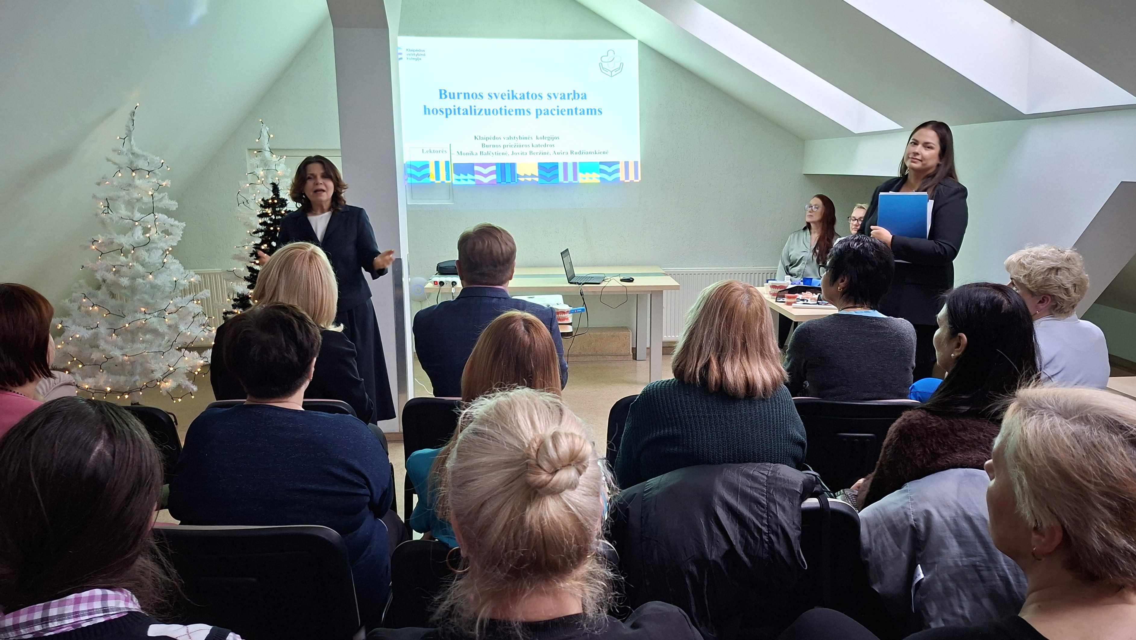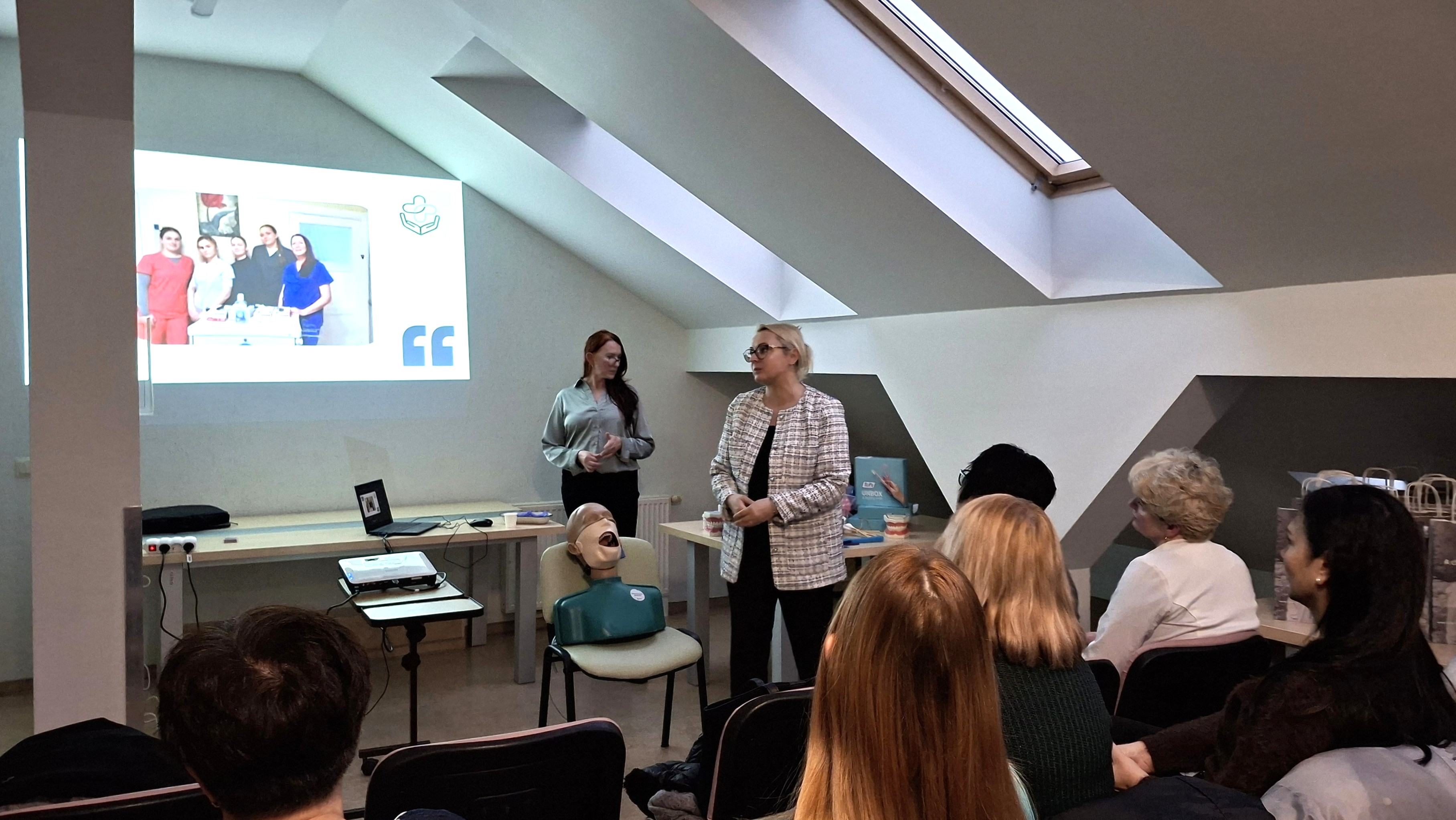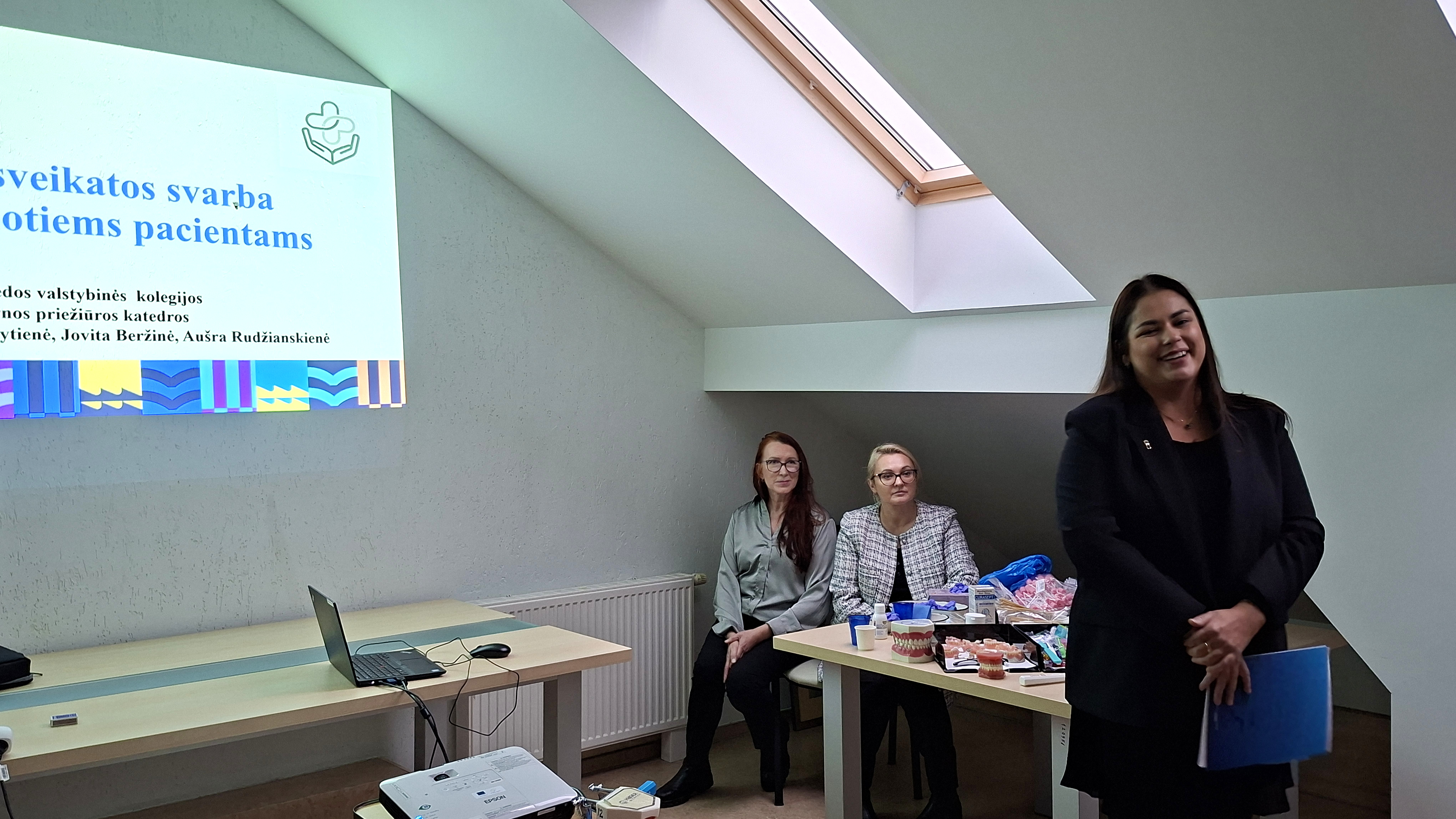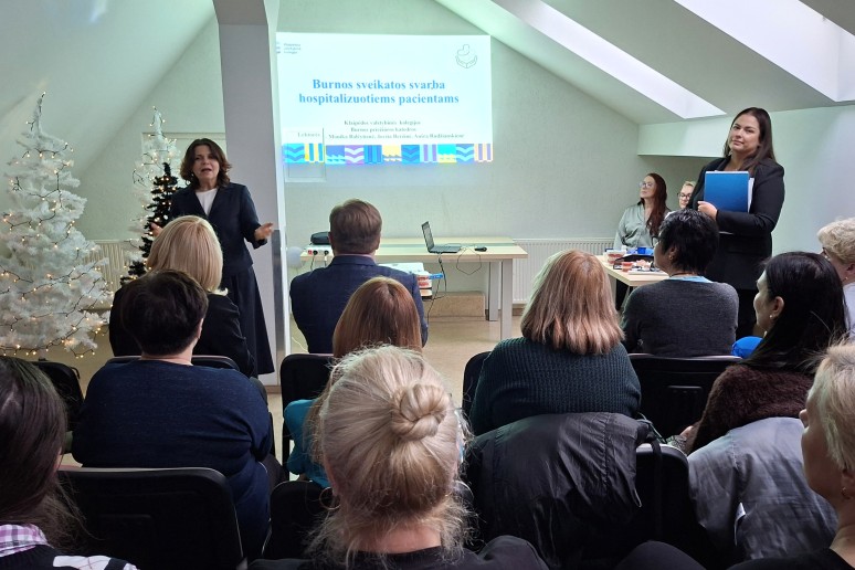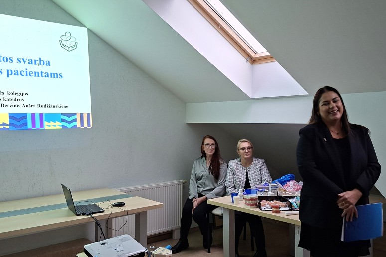 KVK Burnos katedros vedėja Monika Balčytienė skyrė ypatingą dėmesį šio projekto įgyvendinimui. Lektorės - Jovita Beržinė ir Aušra Rudzianskienė sveikatos priežiūros specialistams pristatė iššūkius ir problemas su kuriais susiduriama užtikrinant tinkamą burnos higieną, pasidalino rekomendacijomis ir priemonėmis, kurios yra būtinos efektyviam burnos ertmės, dantų ir išimamų protezų valymui viso pacientų gydymo proceso metu.