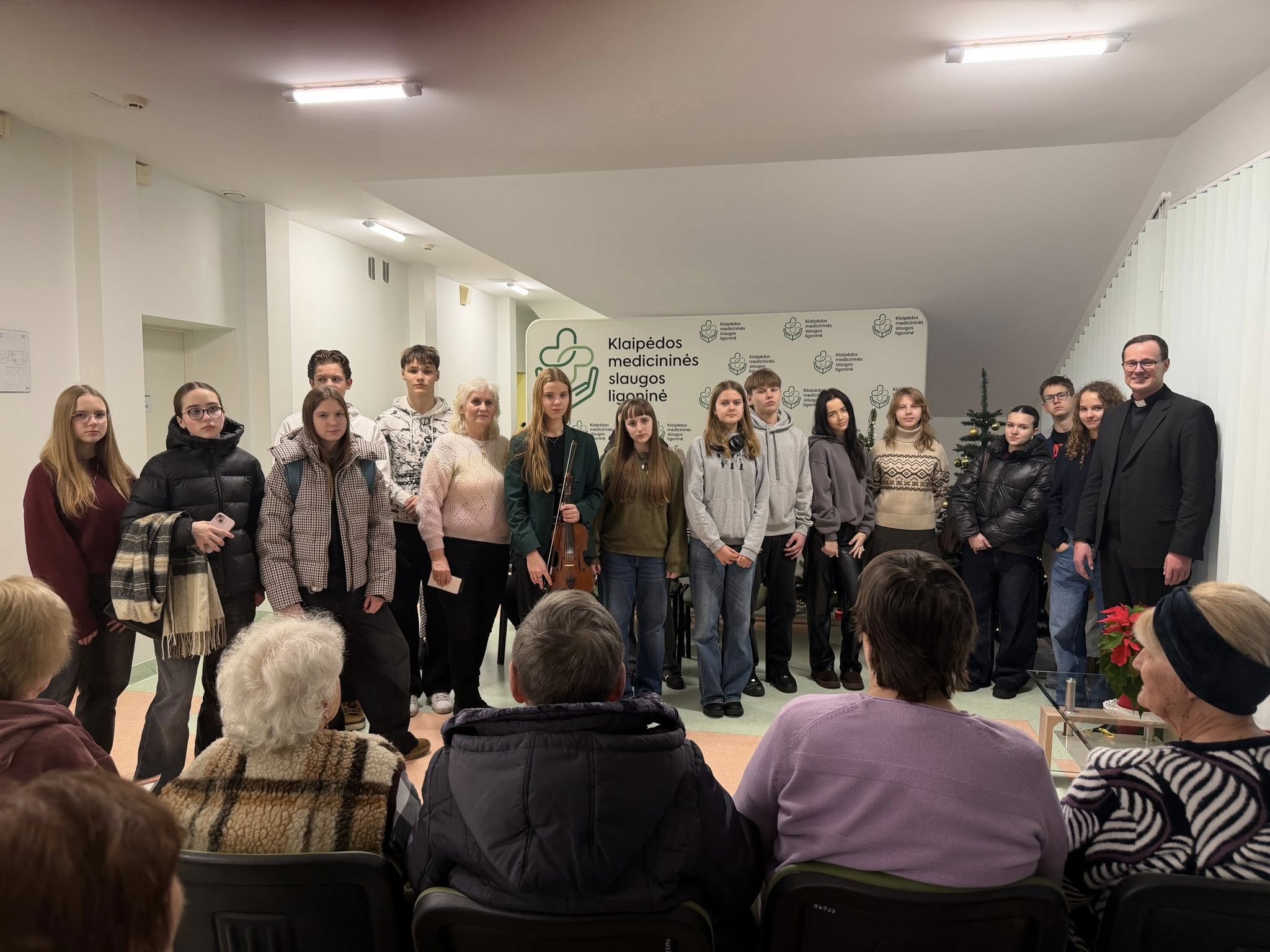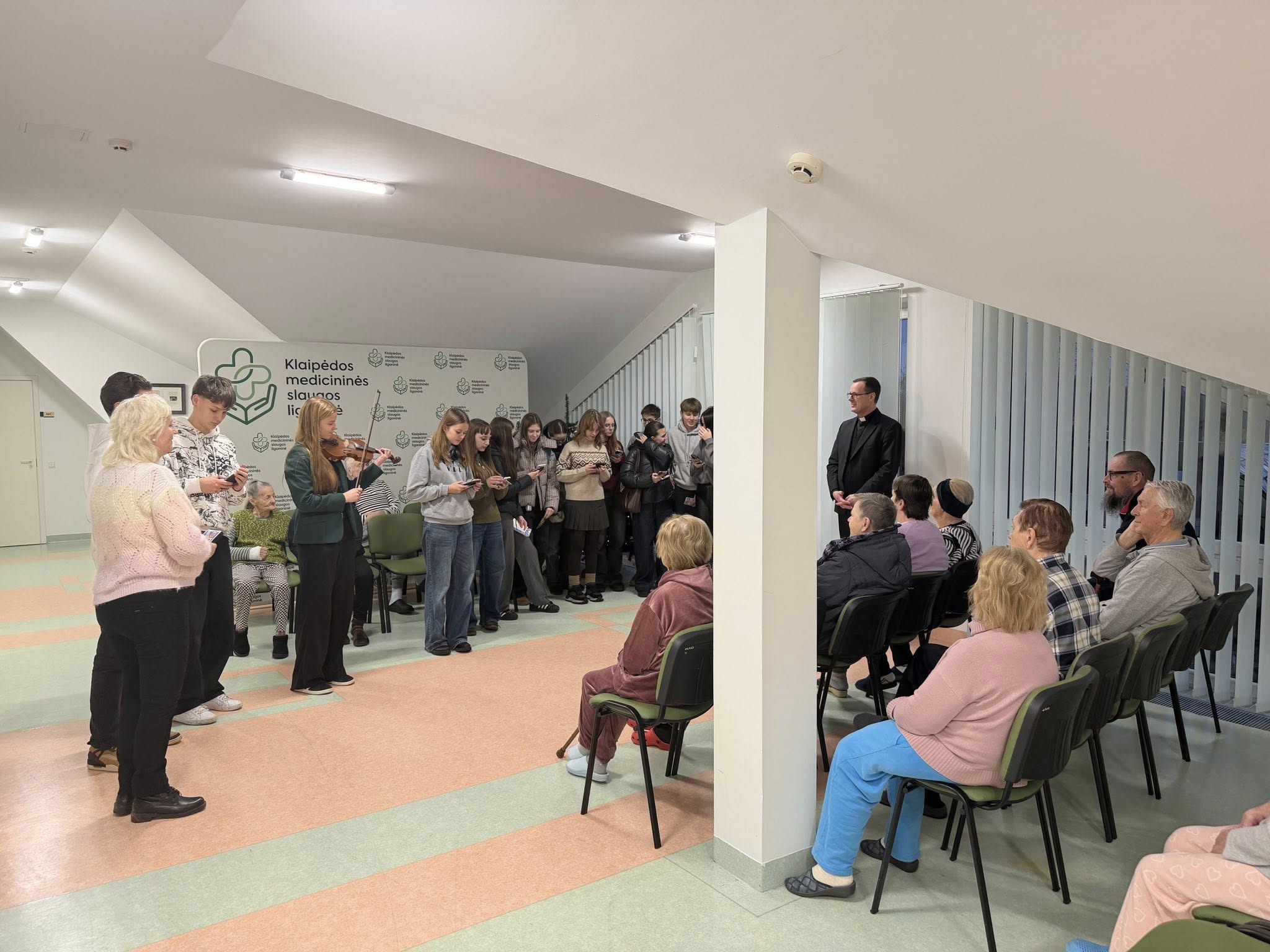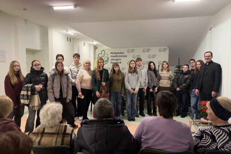 Su dideliu dėkingumu džiaugiamės Klaipėdos Kristaus Karaliaus parapijos jaunimo aktyvumu ir gražia iniciatyva. Gruodžio 15 dieną parapijos jaunimas (sutvirtinamieji) aplankė Klaipėdos medicininės slaugos ligoninės pacientus, linkėdami jiems gražių artėjančių švenčių, ramių Kūčių ir džiaugsmingo Jėzaus gimimo Kalėdų rytą. Kartu giedamos giesmės, smuiko garsai, padovanotas kalėdaitis ir šilti linkėjimų kupini atvirukai tapo tikra vilties ir Kalėdų laukimo dovana pacientams – tegul šis jaunimo gerumas ir širdžių šiluma įkvepia ir kitus dalintis meile bei šviesa.