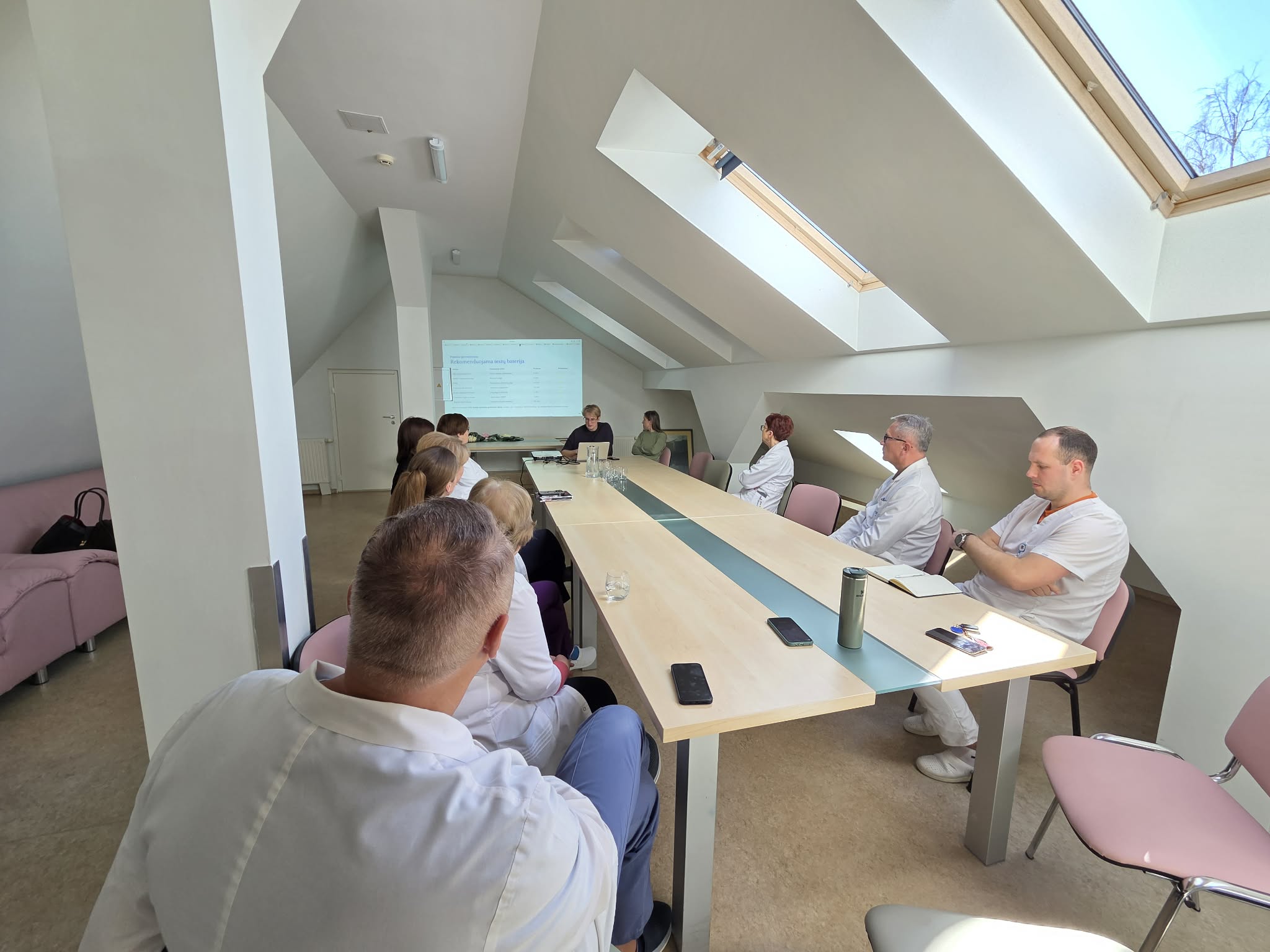 Balandžio 2 dieną ligoninės gydytojams ir kineziterapeutams vyko susitikimas, kurio metu pristatytas reabilitacijos efektyvumo vertinimo modelis, paremtas objektyviais funkciniais testais. Pristatymą vedė Klaipėdos valstybinė kolegija Sveikatos mokslų fakulteto Reabilitacijos ir estetinės terapijos katedros atstovės: doc. dr. Laura Žalienė, lekt. Jurgita Boltutienė ir katedros vedėja lekt. Simona Urbonienė.